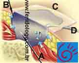 Esquema de aplicação do sistema: O sistema é dotado de esponja estéril de poliuretano (Figura 1A), com três possíveis dimensões (pequena, média e grande) e duas diferentes densidades (dura e macia). Na esponja é introduzido um cateter flexível de absorção (Figura 1D). Tanto a esponja como o cateter serão recobertos por uma película de filme de poliuretano adesivo (Figura 1C). O cateter é ligado ao sistema, denominado Bomba de Terapia V.A.C., que fornecerá e controlará a pressão negativa ao curativo. A quantidade de pressão e modo de aspiração podem variar segundo protocolo e tipo da esponja. |